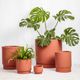 O Kit 5 Vasos Cumbuca Alongado Terracota com pratos é ideal para composições decorativas completas com plantas em diferentes alturas e proporções. Com vasos do modelo Cumbuca Alongada em diversos tamanhos, o conjunto permite criar arranjos equilibrados em ambientes internos ou externos, valorizando o paisagismo e a decoração com plantas ornamentais.