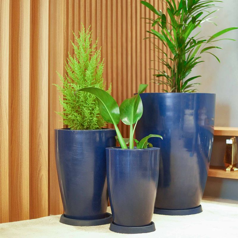 KIT DE 3 VASOS CONE LISO AZUL MACAÚBA COM PRATOS