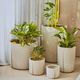 O Kit de 5 Vasos Karajá Branco Mármore é uma composição completa para quem deseja organizar plantas de diferentes tamanhos em um único conjunto decorativo. Com cinco vasos em alturas progressivas ? 16cm, 24cm, 42cm, 50cm e 70cm ? o kit permite criar composições equilibradas em salas, varandas, jardins e áreas de convivência. O design da linha Karajá valoriza a presença das plantas e facilita a criação de arranjos harmoniosos em projetos de decoração e paisagismo.