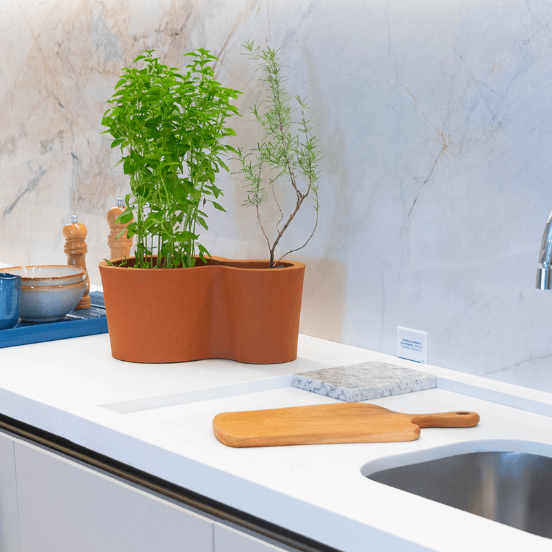 O vaso organíque comporta 2 plantas devido seu design possuir 2 potes para plantio