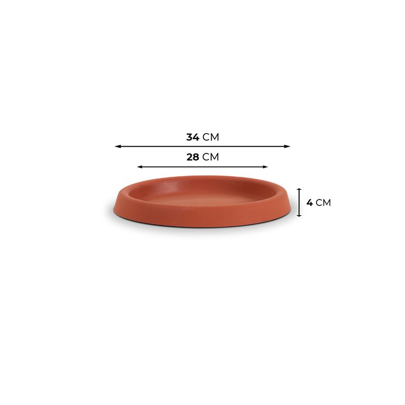 Prato G: 28 cm de boca X 34 cm de comprimento Esse prato é compatível com os vasos: Karajá 42 Os pratos possuem Proteção UV. Material: polietileno (plástico) 100% reciclado.